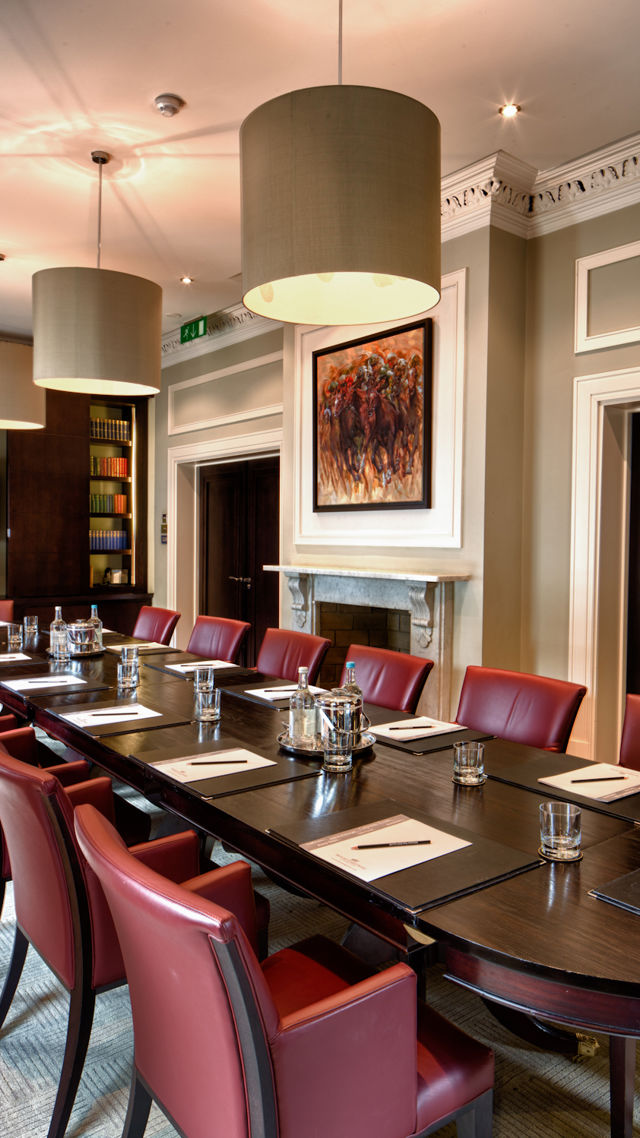 At once traditional and contemporary, the Cambridge Room matches rich period details — dark timbers, ornate fireplace, framed artwork — with vibrant injections of colour. Pull back the curtains and let natural light flood the room. Time to get to work.