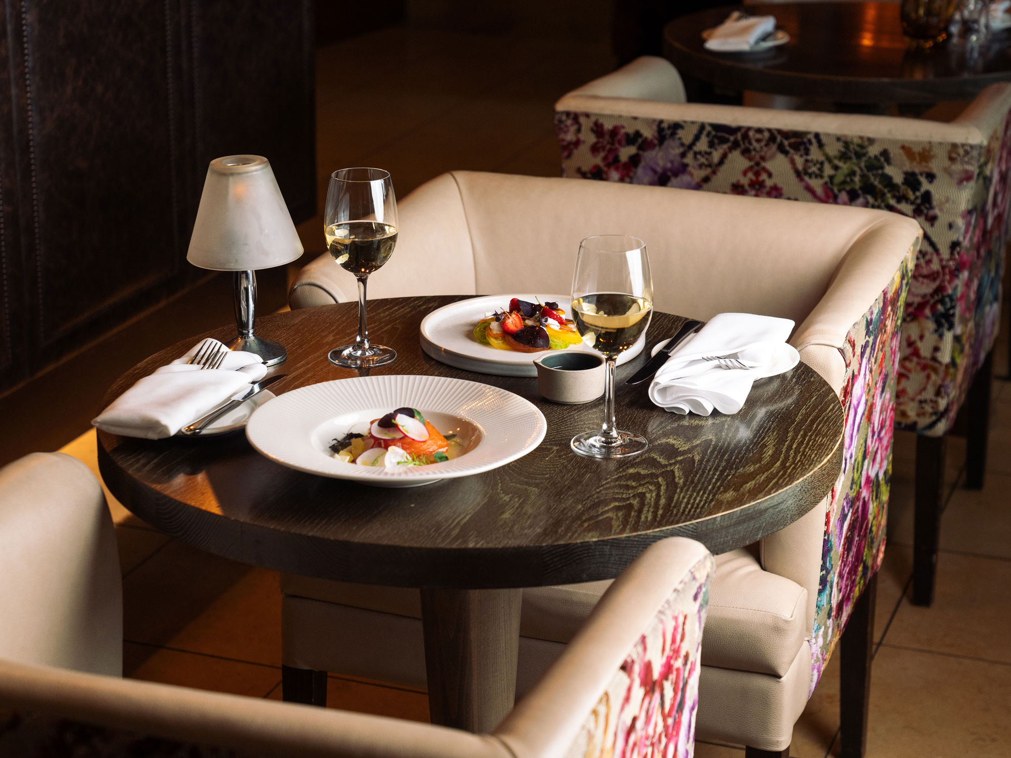 Seated between the soaring arched windows and understated bar, the stage is set for a good time.