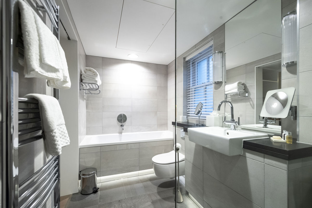 Whether you’re dressing for a night out or luxuriating in the deep bathtub, you'll find the signature bathroom becomes a private haven of relaxation. Uncomplicated, deeply comfortable and perfectly put-together, this is everything you need for an indulgent escape.